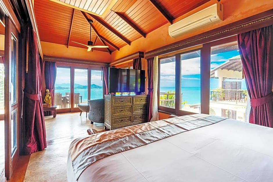 Offering panoramic ocean views from every room, this 2-bedroom villa features a 40-sqm private infinity-edge pool with sun loungers. The outdoor living area includes a dining table and lounge chairs. Complete with a vaulted tea wood ceiling, the indoor living room has a 48-inch flat-screen TV, a separate dining area and a modern kitchen. Large glass sliding doors lead directly to the pool and deck area. It has a marble bathroom with a shower.